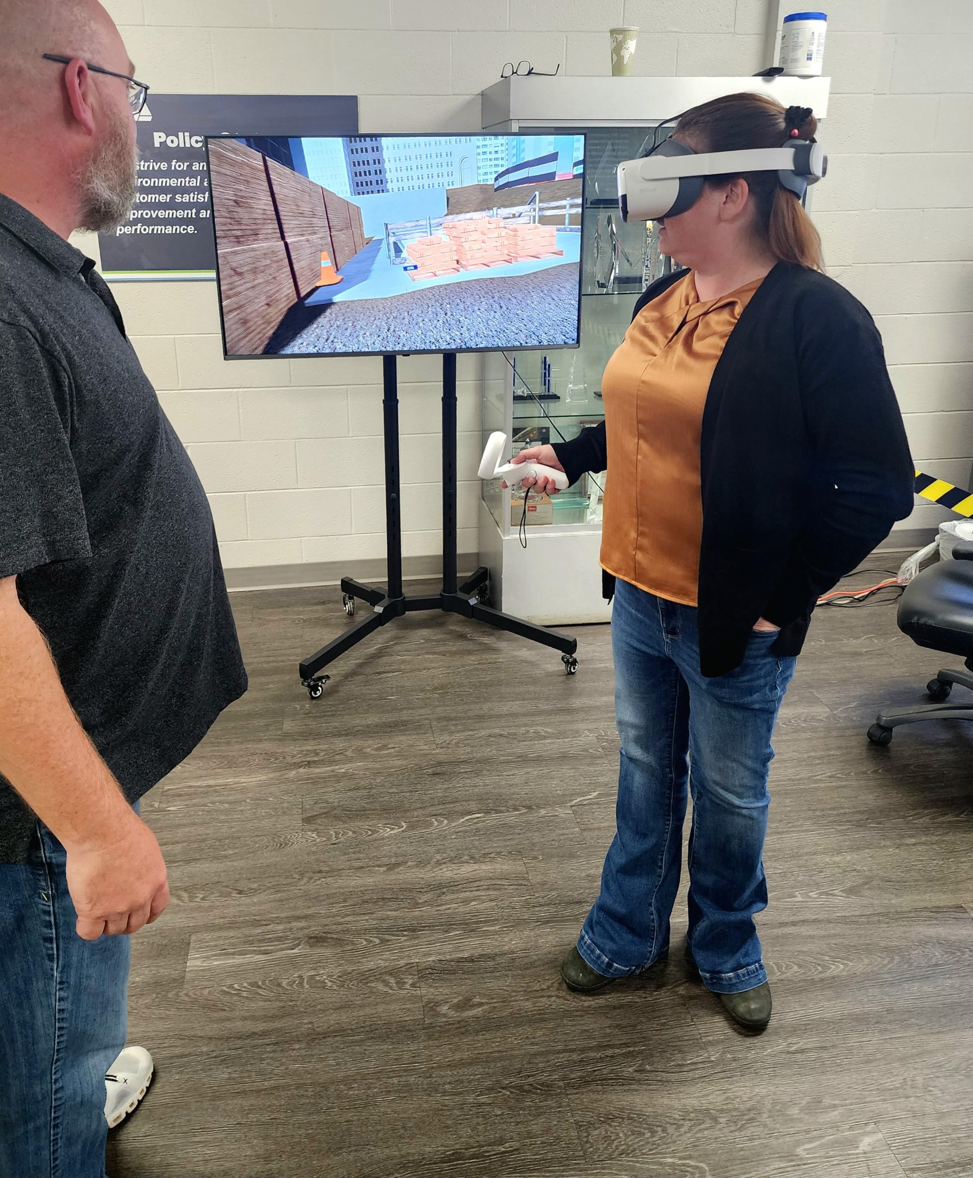 The EHS Safety and Wellness Week started on Tuesday, November 7th with a variety of safety and wellness activities. Simulator stations, including our new VR Hazard Recognition and Construction Hazards Recognition modules, were set up in the Admin breezeway! The simulator room was open to participants interested in testing out their skills on the fork truck and overhead crane.